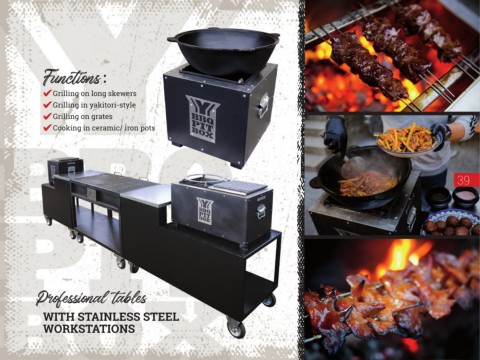 Functions: Grilling on long skewers Grilling in yakitori-style Grilling on grates Cooking in ceramic/ iron pots 39 Professional tables WITH STAINLESS STEEL WORKSTATIONS